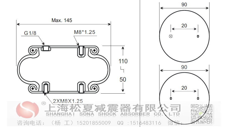 JBF145/110-1型卷邊式空氣彈簧技術參數結構圖: